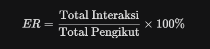 ER harian = jumlah engagement dalam satu hari dibagi jumlah followers lalu dikali 100
